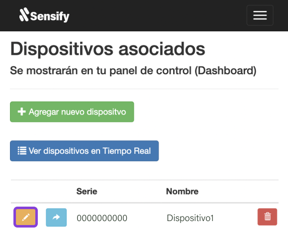 Una vez allí visualizará una lista con todos sus dispositivos asociados. Seleccione "Editar" podrá para modificar el nombre de un dispositivo.